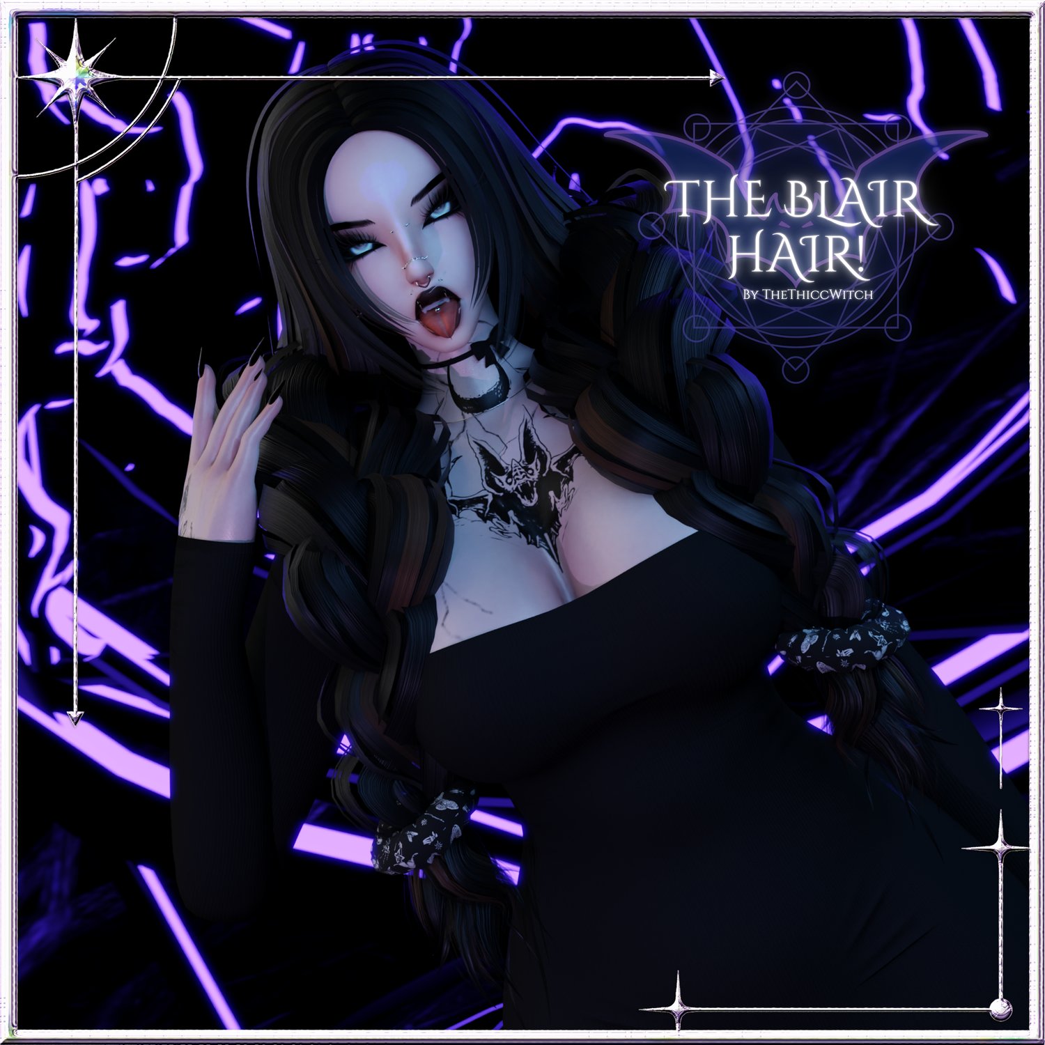 Tags - thethiccwitch, goth, braids, braided, hair, long, styled hair, cute, scrunchie, bow